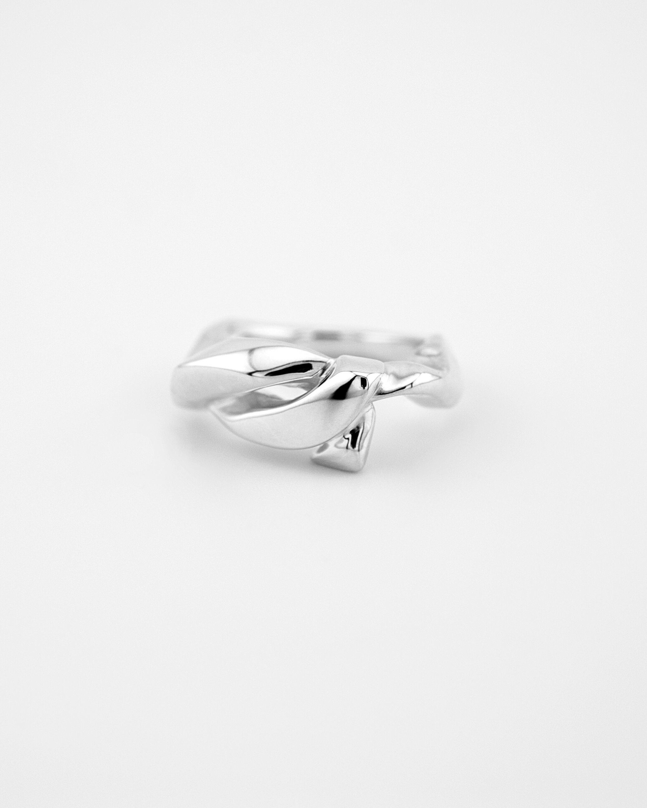 Twist chain Ringは、変形したチェーンをモチーフに、程よいボリューム感や繊細さで造形され、その対比から見る角度によって異なる表情を生み出す、エッジを効かせたリングです。