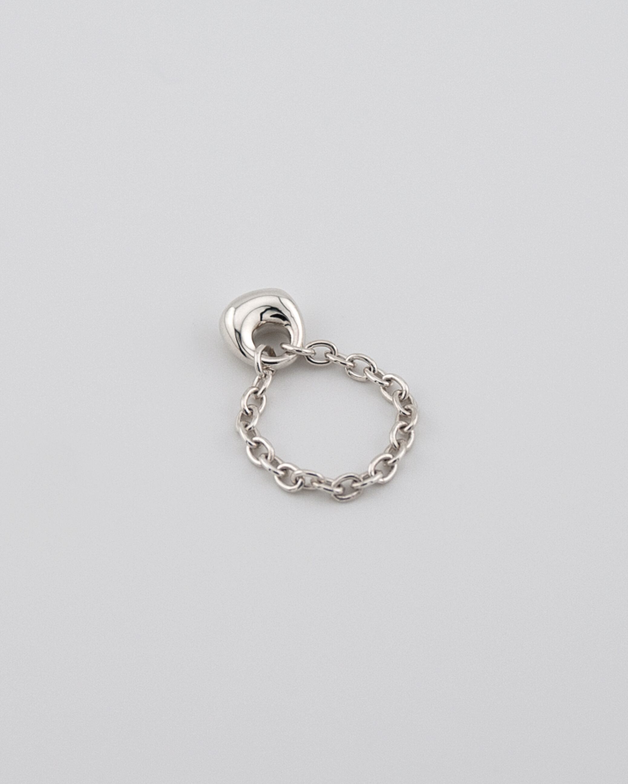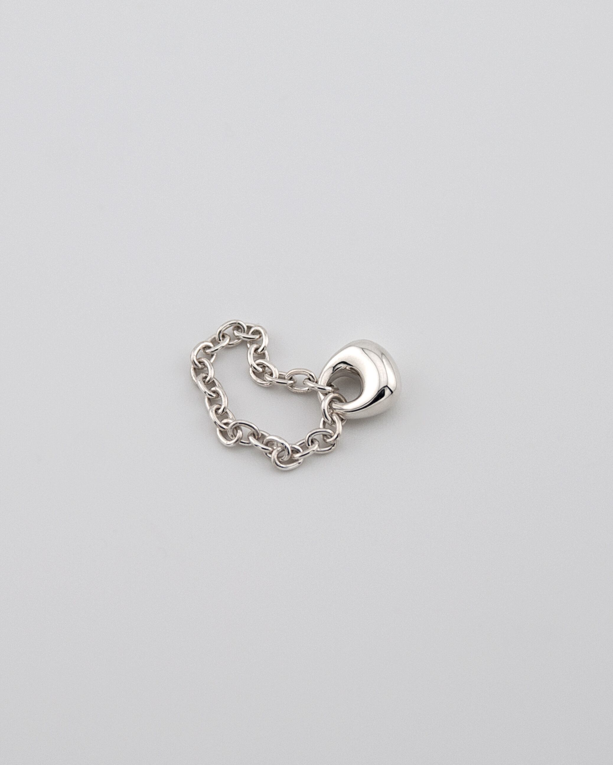 Crafted from a supple silver chain and a small drop-shaped charm, this chain ring balances delicacy with form.